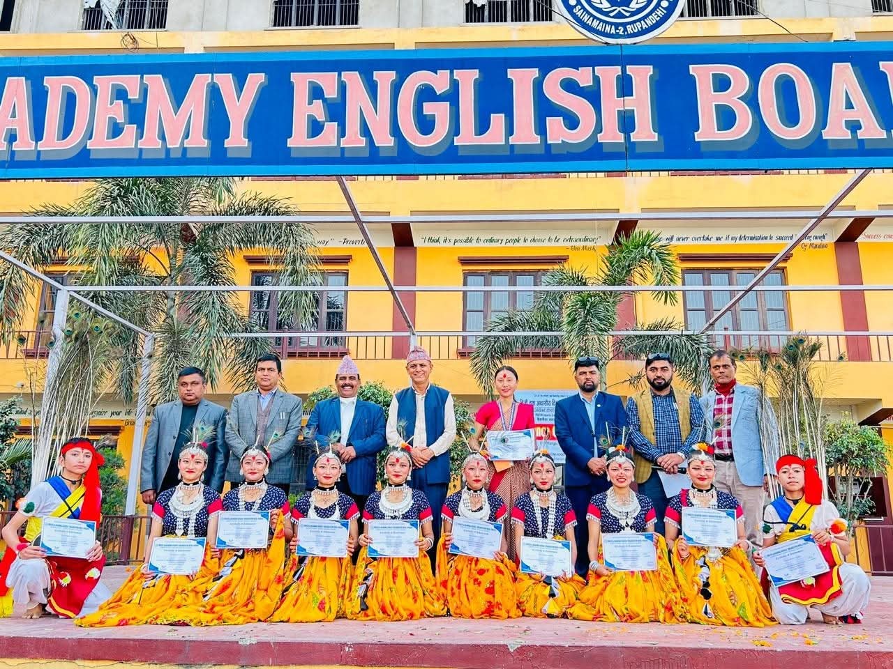 प्याबसन सैनामैनाद्वारा आयोजित नगरस्तरीय लोक नृत्य प्रतियोगितामा न्यु एकेडेमी प्रथम