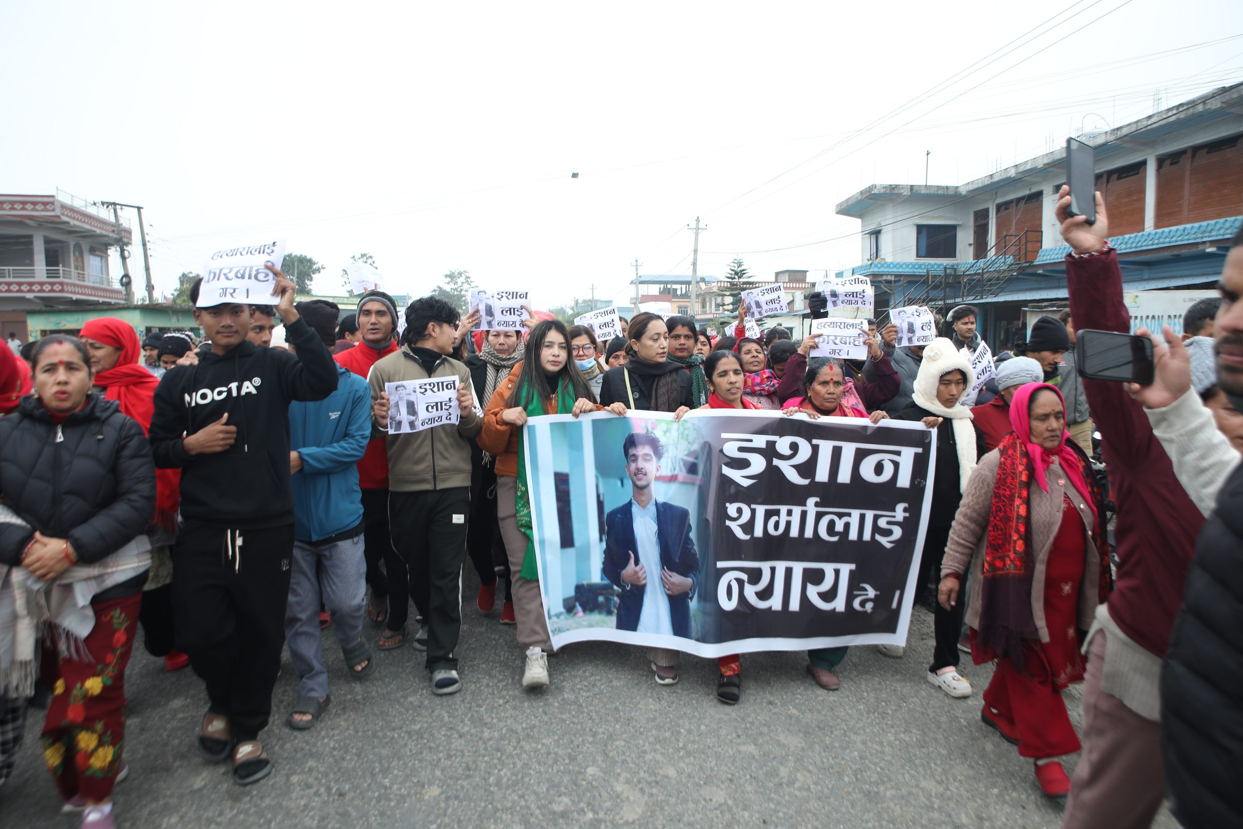 मृतक इशान शर्माको न्यायका लागि कञ्चनमा मौन जुलुस